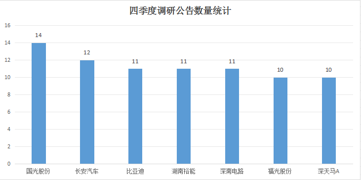 其中,国光股份发布了14则,长安汽车发布了12则;比亚迪、湖南裕能、深南电路各发布了11则;福光股份、深天马A各发布了10则。
