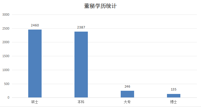 同花顺数据显示,截至12月23日收盘,A股有2460位董秘是硕士,2387位董秘是本科学位,135位董秘是博士。