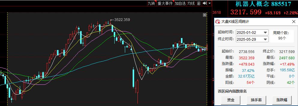 今年以来,A股机器人概念持续火热,根据东财显示,年初至今,机器人板块指数已累计上涨17.49%。