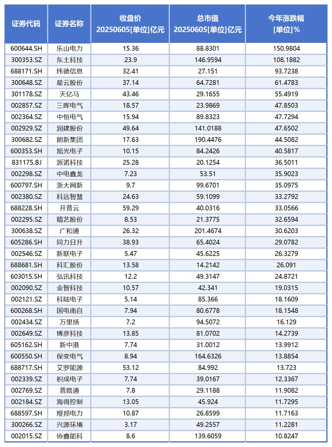 从二级市场表现看,今年以来,涨幅超过10%的个股一共有35只,其中,乐山电力、东土科技涨幅均超过100%。