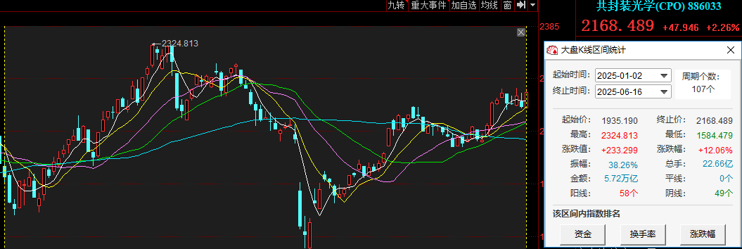 6月16日,A股CPO(光电共封装)概念拉升,板块指数(886033)上涨2.26%。成分股科翔股份上涨12.80%,致尚科技上涨12.65%,东山精密实现10CM涨停,炬光科技、汇绿生态、太辰光、可川科技等个股跟涨。