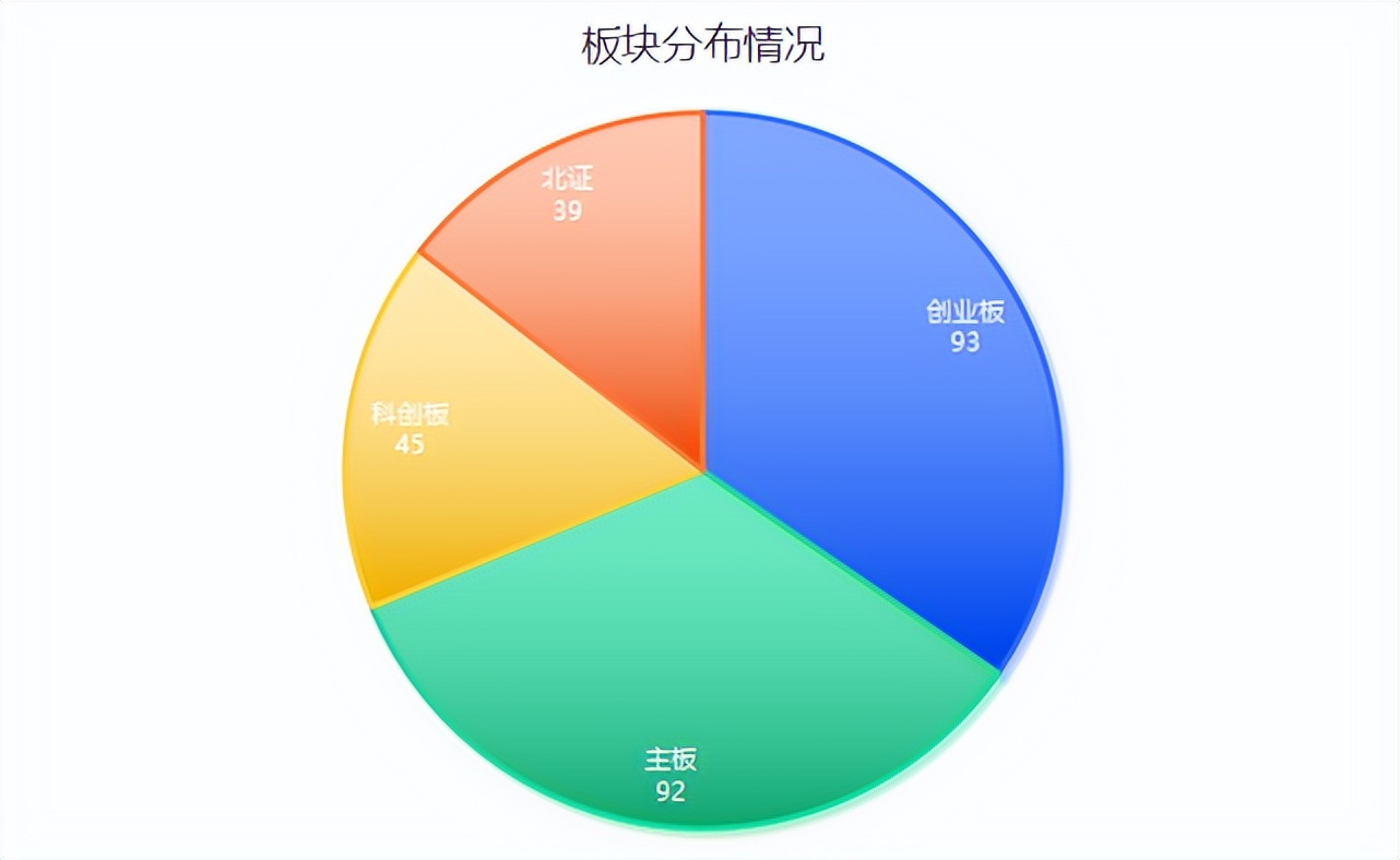 从板块来看,来自创业板和主板的企业较多,分别为93家、92,科创板和北证分别为45家、39家。