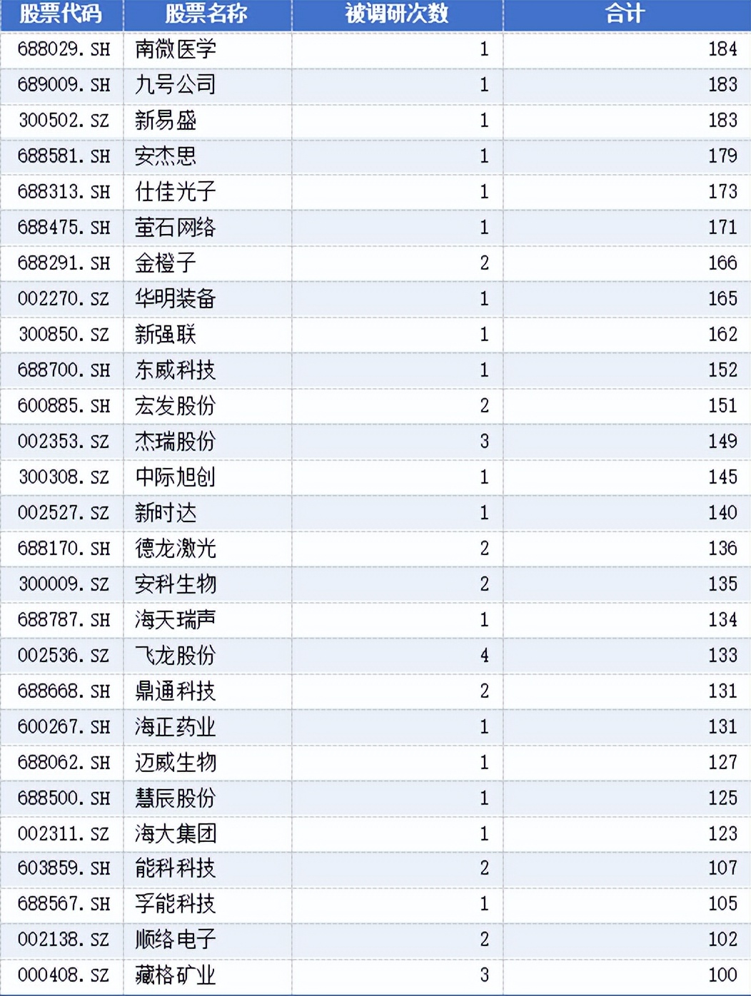 根据同花顺数据,近3个月以来,接受机构调研的上市公司有722家,被调研次数最少的为1次,最多的达11次,涉及机构数量过百。