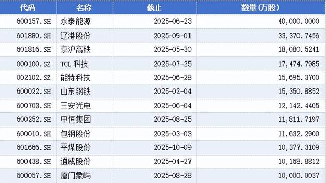 从已完成股份回购的企业回购数量来看,永泰能源、辽港股份、京沪高铁、TCL科技、能特科技、山东钢铁、三安光电、中恒集团、包钢股份、平煤股份、通威股份、厦门象屿累计回购数量较多,均超1亿股。