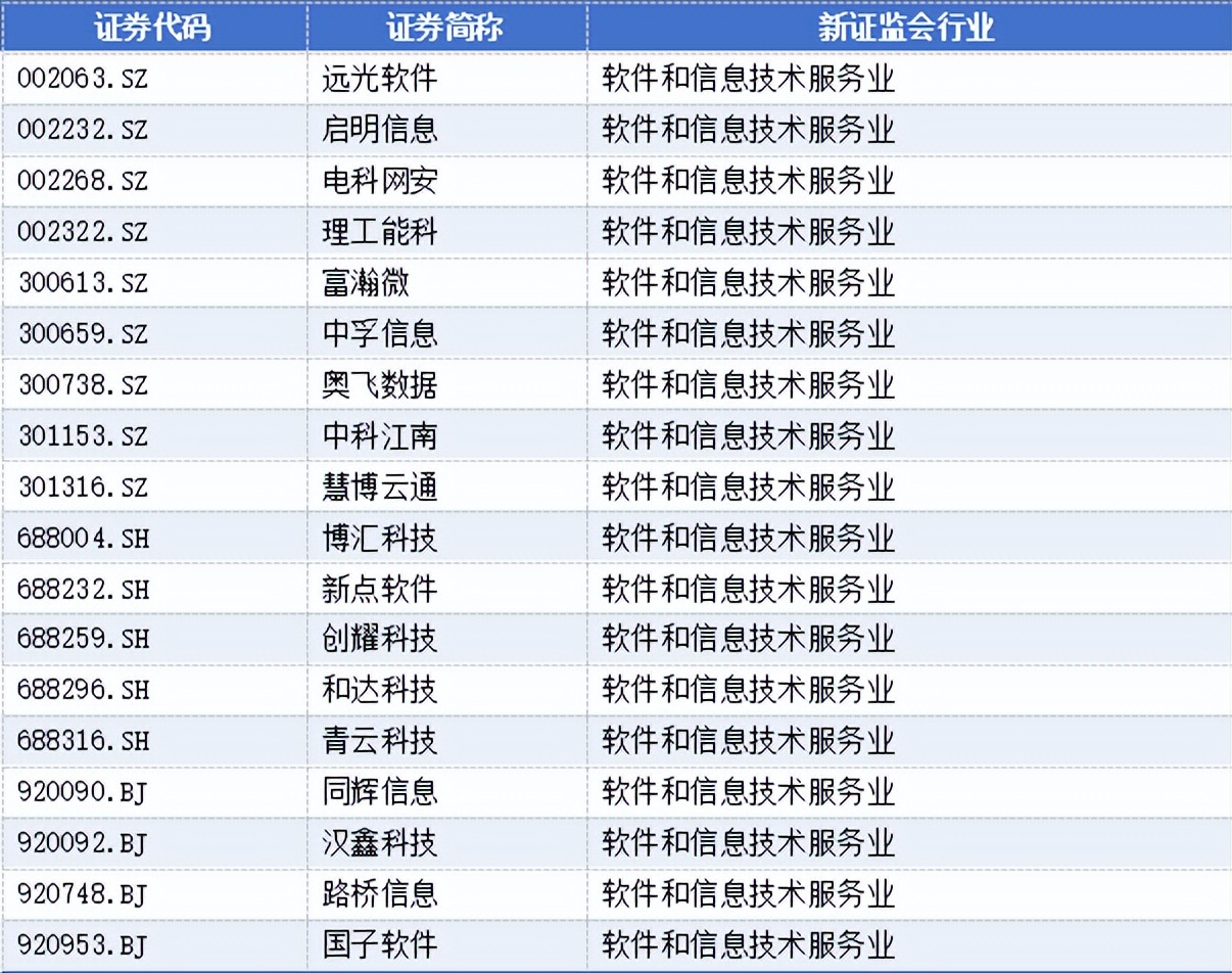 软件和信息技术服务业有18家,分别为: