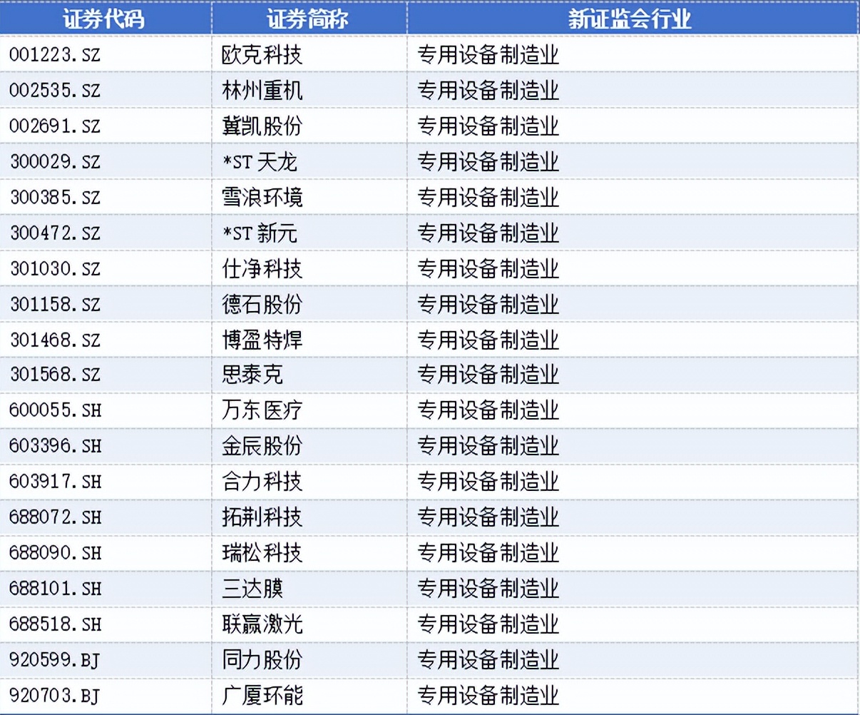专用设备制造业有19家,分别为:
