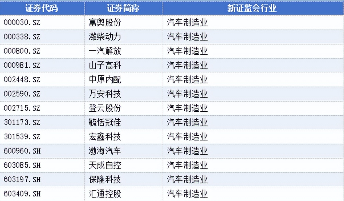 汽车制造业有13家,分别为: