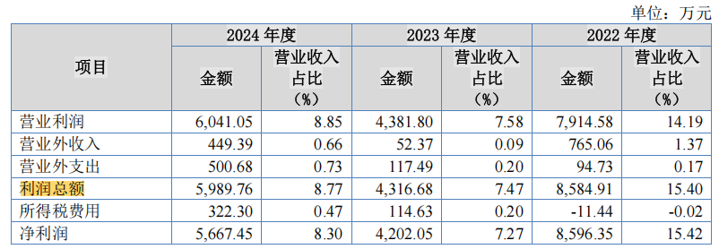 招股书显示,2022年至2024年,华宇电子利润总额分别为8584.91万元、4316.68万元、5989.76万元。