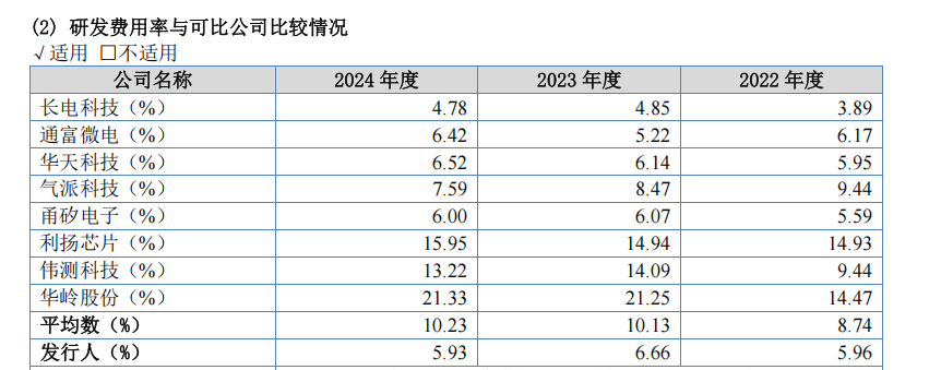 在冲击深交所之时,华宇电子就曾因研发费用率不及行业平均水平而被质疑。如今,这个问题仍旧存在。数据显示,2022年至2024年,公司研发费用分别为3324.33万元、3850.59万元、4052.87万元,占报告期各期营业收入的比例分别为5.96%、6.66%、5.93%;同一时期内的行业平均水平则为8.74%、10.13%、10.23%。