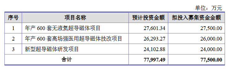 健信超导在第二轮回复函中表示,结合公司实际经营情况及未来发展规划等因素,公司第一届董事会第十六次会议对募投项目进行了调整,取消补充流动资金项目,调整后本次募集资金总额不超过人民币7.75亿元。