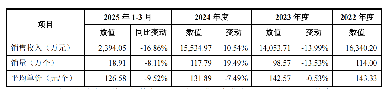 价格方面,2023年度销售单价与2022年相比基本保持稳定,2024年度销售单价较上年下降7.49%,主要系加热器暖风产品销售占比上升所致。2025年1-3月销售单价较上年同期下降9.52%。