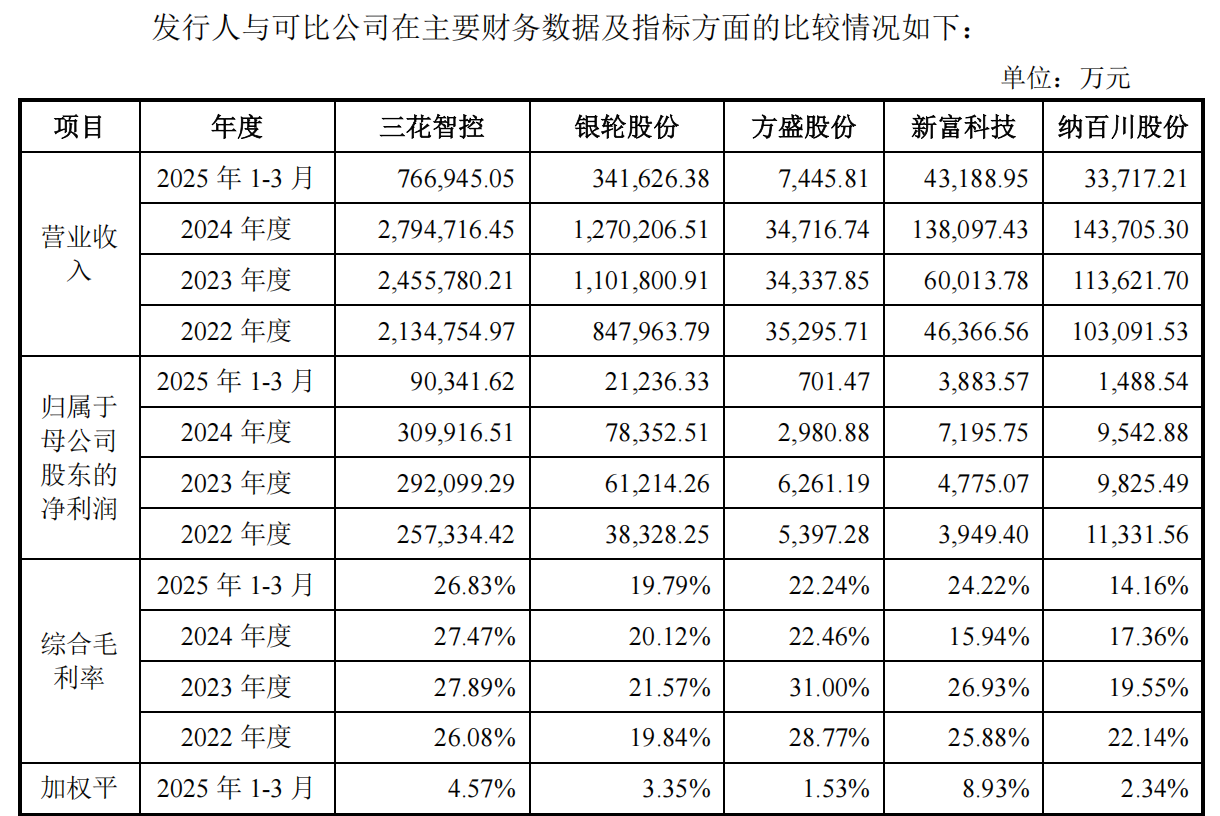 2023年度、2024年度、2025年1-3月,纳百川研发费用分别为3,406.96万元、4,394.05万元、5,411.17万元、1,016.53万元,占报告期内营业收入比例分别为3.30%、3.87%、3.77%、3.01%,不及同行业可比公司平均值。截至2025年3月31日,公司获得203项专利,其中发明专利20项、实用新型专利183项,远远逊色于行业龙头。