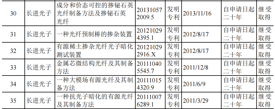 图 6 长进光子6项发明专利为继受取得(来源:招股书)