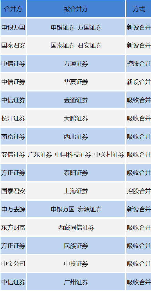表历史重要券商间并购案例一览表