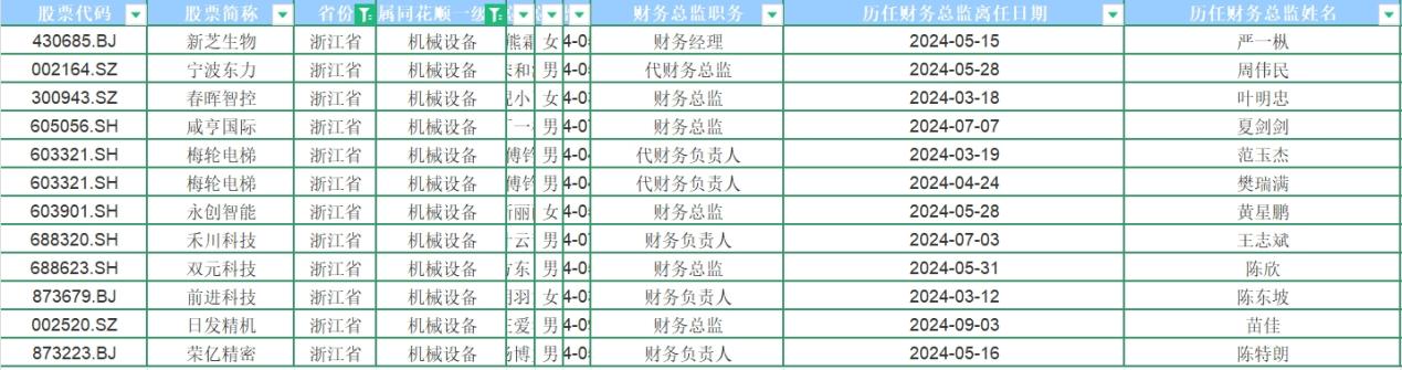 浙江省多家企业短时频繁更换财务高管