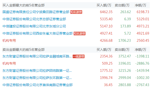 龙虎榜数据显示,近一个月,该股13次上榜。其中,东方财富证券拉萨金融城南环路证券营业部、东方财富证券拉萨团结路第一证券营业部、中信证券北京总部、国盛证券宁波桑田路证券营业部等多家顶级游资悉数现身。