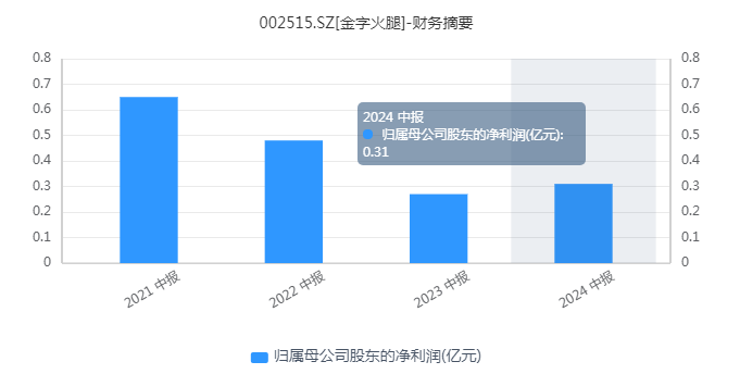 事实上,近年来,金字火腿营收已呈现疲软态势,归母净利润持续下滑。