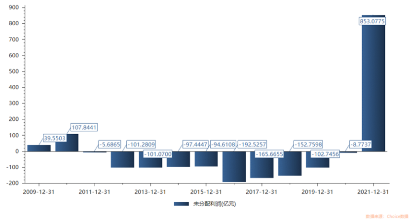 上一轮周期里,中远海控长达10年未分配利润为负数