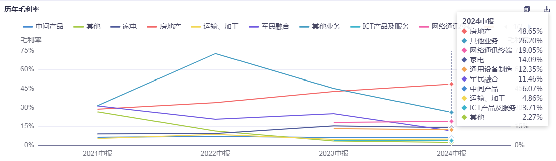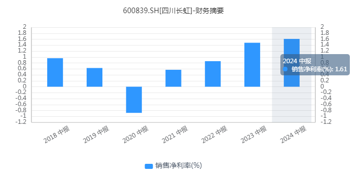 近年来,四川长虹也在其他领域寻求新的增长动力。目前,四川长虹主要涉及智能家电、通用设备制造、ICT综合服务、中间产品、网络通讯终端、物流服务、房地产以及物流服务八大业务。
