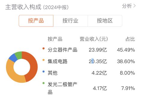 2024年上半年,士兰微在分立器件和集成电路产品的销售收入中,已有73%的收入来自新能源、汽车、大型白电、通讯、工业等高门槛市场。