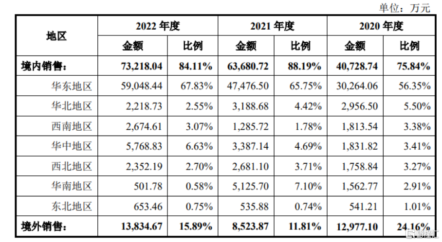 公司业务按区域分类情况,图片来源:招股书