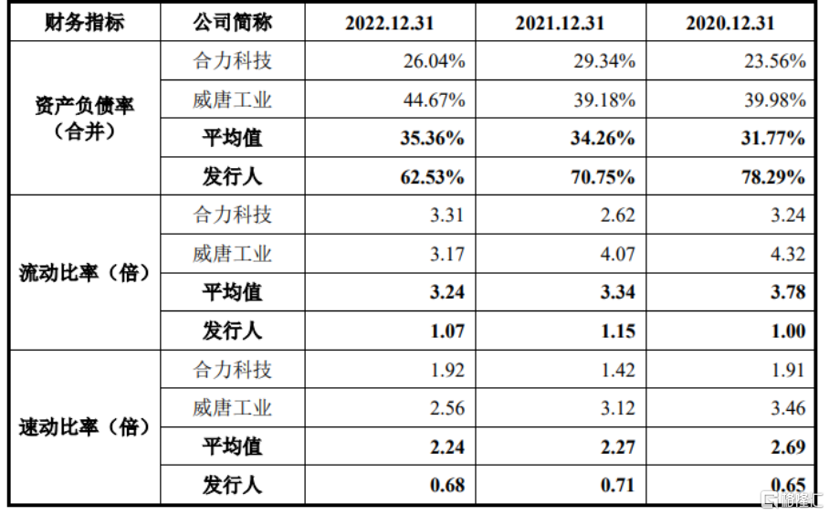 相关偿债能力指标与可比上市公司对比,图片来源:招股书