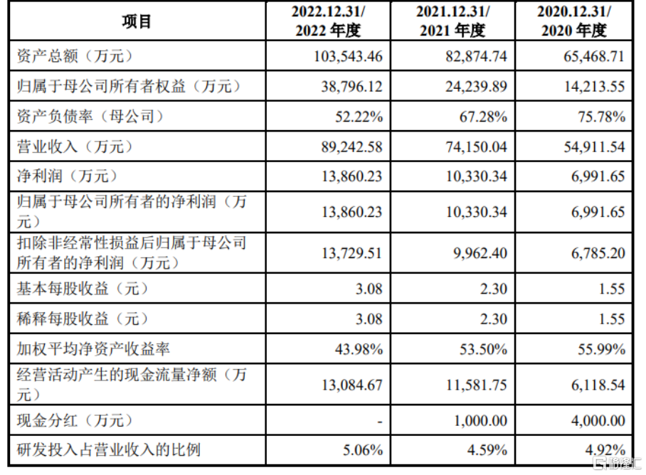 报告期内,江顺科技实现营业收入分别为 5.49亿元、7.42亿元、8.92亿元,扣除非经常性损益后归属于母公司所有者的净利润分别为6785.20万元、9962.40 万元、1.37亿元。