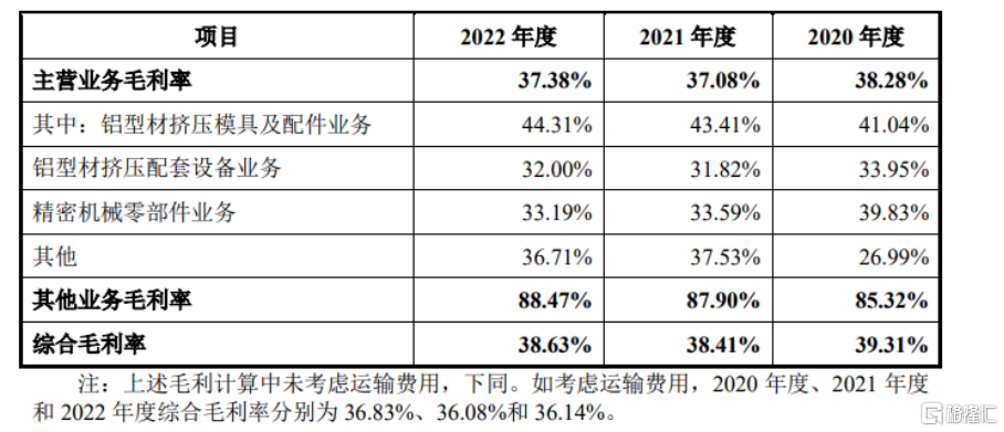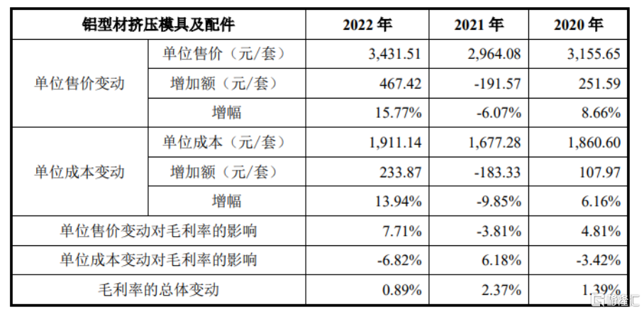 公司铝型材挤压模具及配件业务的毛利率变动情况,图片来源:招股书