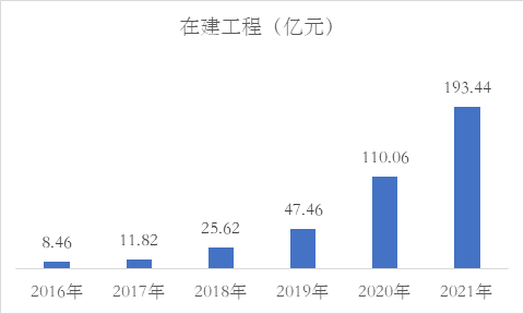 从最开始8.46亿到2019年的47.46亿再到2020年的110.06亿,在建投入越来越大,去年在建工程投入高达193.44亿,投资规模接近去年全年营收的2成。