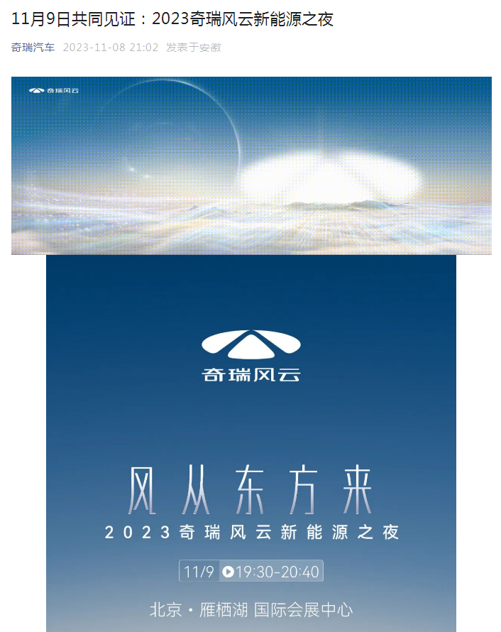 风云发布会的官方宣传平台是奇瑞汽车,新闻稿是这么写的: