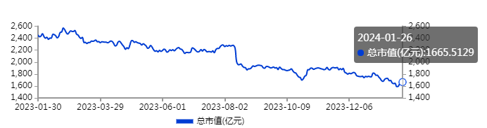 截至1月26日收盘,美邦服饰报收1.85元/股,跌幅1.07%,总市值46.48亿元。