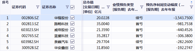 值得关注的是,在威帝股份、路畅科技、蓝黛科技、华安鑫创4家公司属于业绩首亏。