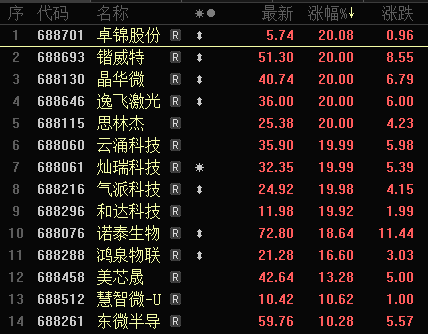 需要说明的是,科创板是半导体上市公司的聚集地,含“芯”量较高。在科创板领涨个股中,同样也是以半导体个股的表现最为活跃。截至当日收盘,锴威特(688693.SH)、晶华微(688130.SH)、灿瑞科技(688061.SH)、气派科技(688216.SH)均收获20CM涨停。