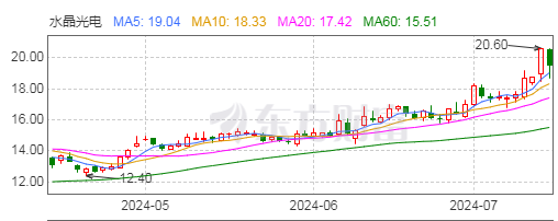 7月12日,水晶光电股价大跌,截止收盘,报价19.53元/股,跌幅5.19%。