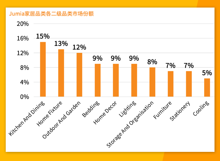 比如南非房地产市场正朝着可持续发展转型,对绿色建材的需求将会持续增加;另外,消费者也更倾向采购可持续家居产品,比如用可再生材料制成的产品、更节能节水的家具产品等。二则,在电商渠道方面,当地超过七成消费者认为“直接送货到家”是选择网上购物的主要原因,其次则是价格较低。非洲消费者在网购过程中,也更偏向实用型小家具产品。据非洲本土电商平台Jumia数据显示,家居品类中最受欢迎的前三品类分别为厨房餐厅用具、家装用具和户外及花园装饰。