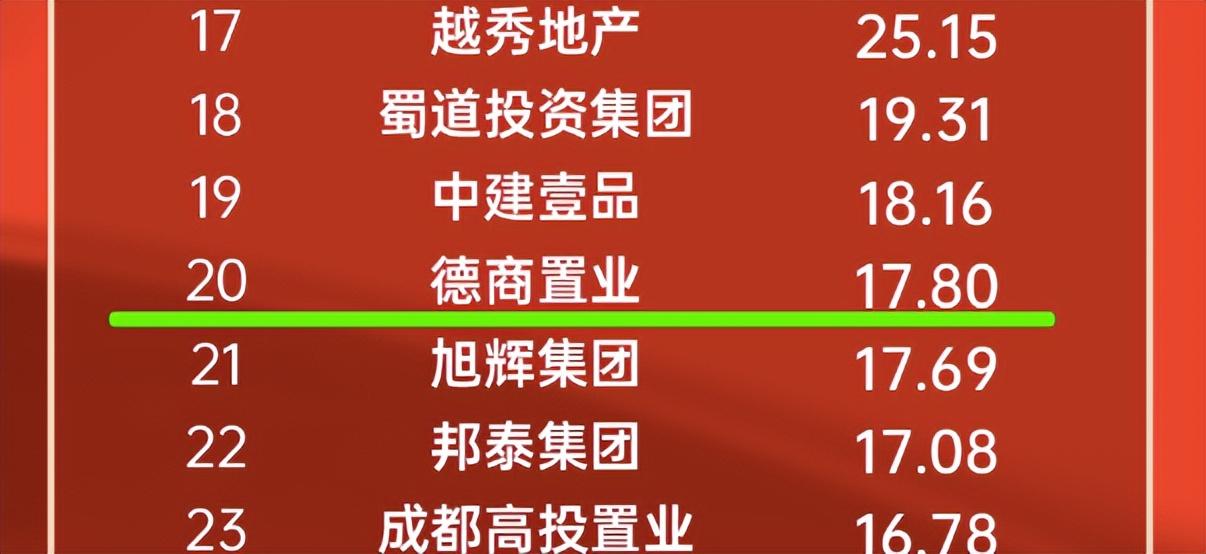 而德商集团近年发展困顿,克而瑞数据,今年上半年德商置业销售额约17.8亿元,较两年前腰斩,跌出“第二梯队”,排名滑落到成都市场TOP20。