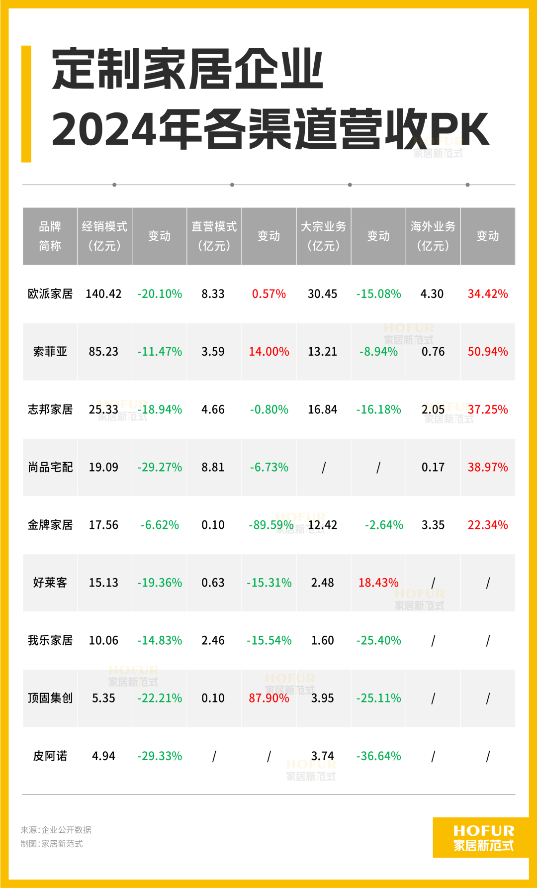 那么,当前国内定制家居行业龙头企业的生存状况如何?九大上市企业在门店数、直营店加码、毛利率、人均坪效、减员控制、四费优化、海外增量、整装成效、产品结构调整、现金流及应收账款等关键业绩指标方面,平均情况和各家之间的PK、排行分别如何?显现出哪些好的苗头和“黑马”?本期家居新范式通过深入拆解2024年年报,立体呈现,以观全貌。