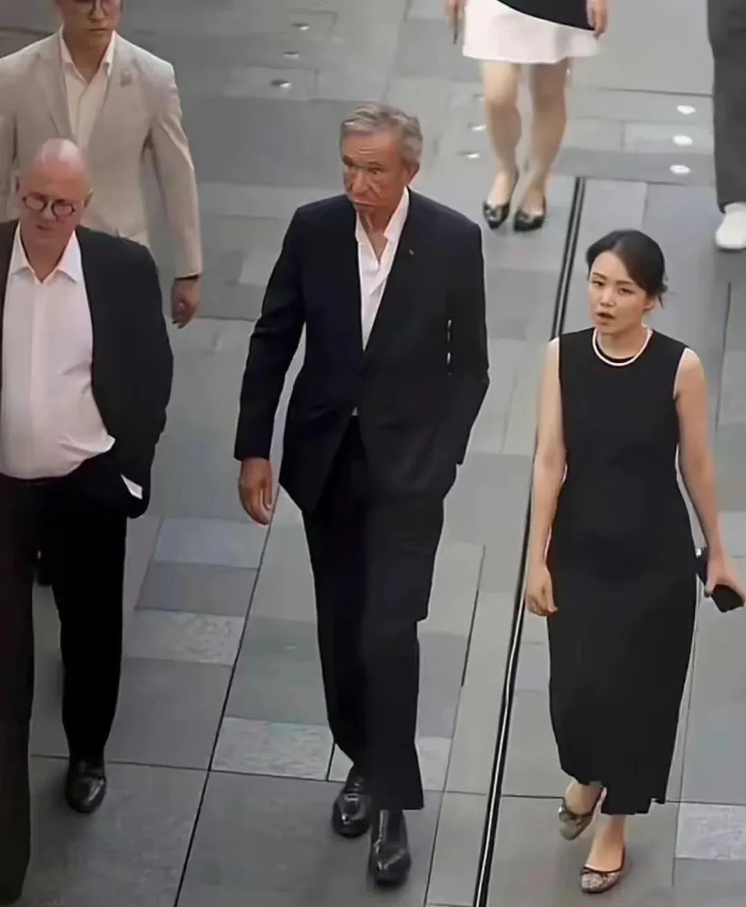 2023年,LV总裁伯纳德·阿尔诺带着家人中国行,完成北京太古里巡店后来到成都。当天,伍玉珊作为成都太古里总经理身份陪同巡店。