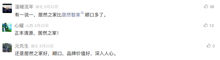 文章发布后,迅速获得读者热评。多位读者表示看好居然智家的改名措施:“有一说一,居然之家比居然智家顺口多了”,“正本清源,居然之家”,“还是居然之家好,顺口,品牌价值好,深入人心”。