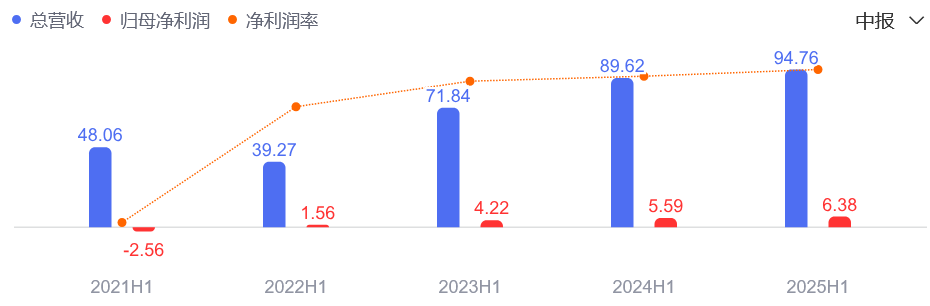奥马电器易主后,获得TCL实业的赋能,业绩可谓“一飞冲天”。2021年,其业绩实现大幅增长;2022年,其业绩摆脱亏损,净利润达到4.64亿元,同比增长681.21%;2023年及2024年,其业绩连续两年实现快速增长。改名后一年多后的今天,2025半年报显示,其营业收入为94.76亿元,同比增长5.74%;归母净利润为6.38亿元,同比增长14.15%。