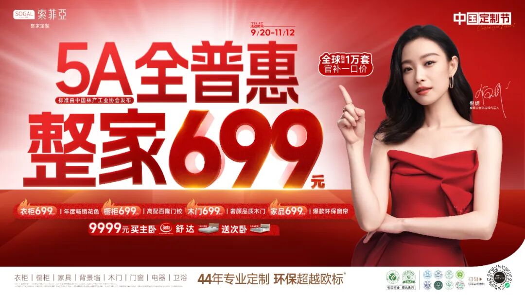 今年的“金九银十”家装旺季似乎比往年来得更早一些,多家家居家电家装品牌已开启了摩拳擦掌的态势。而最亮眼的“王炸”,当属索菲亚近日线上官宣的【5A全普惠整家699元】。