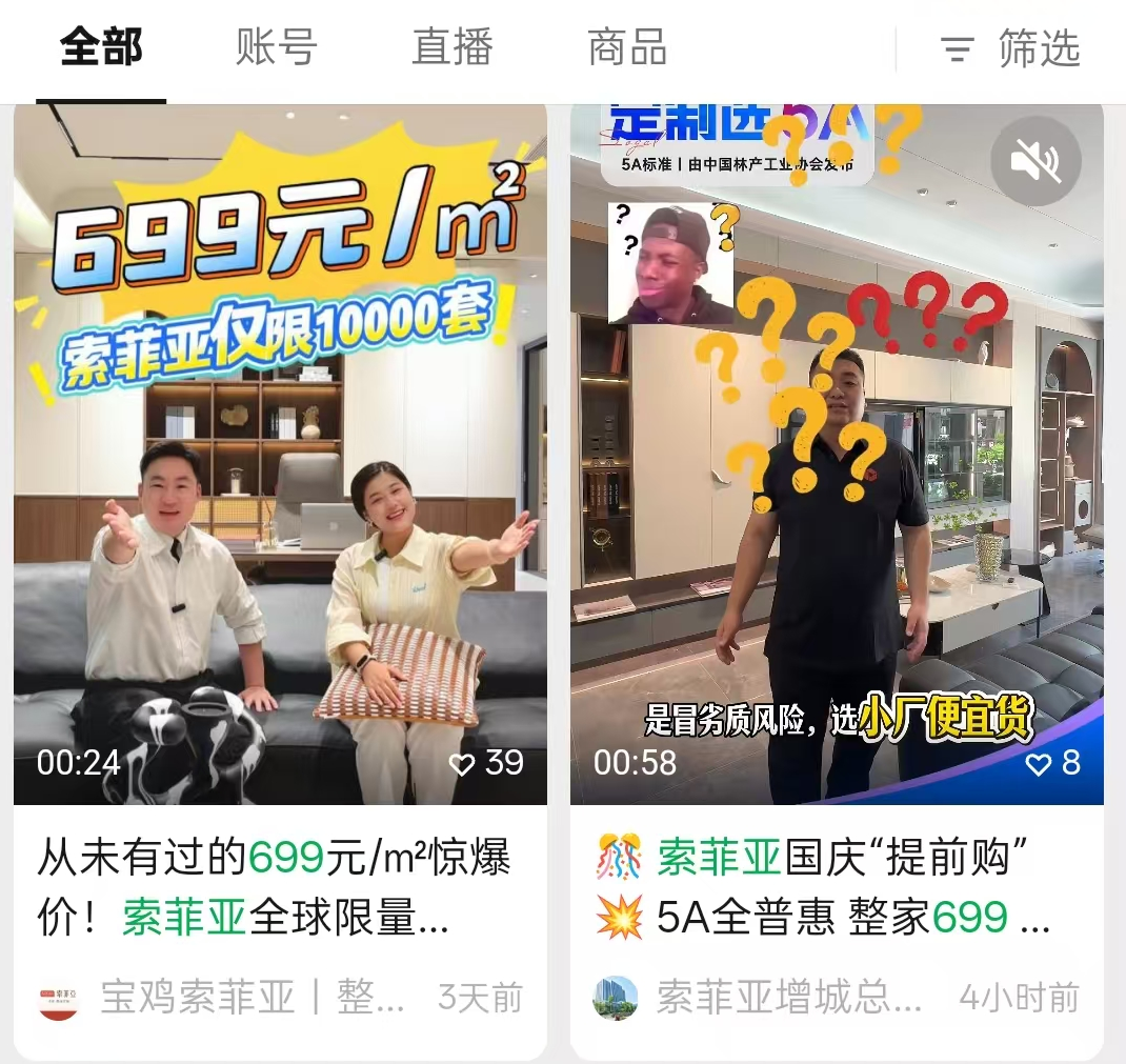 在视频号等社交媒体上,索菲亚杭州、西安、南宁、南充、中山、石家庄、石门等地的索菲亚城市运营商,正以庞大的矩阵式方阵“奋进”,在全网掀起一场前所未有的普惠风暴。