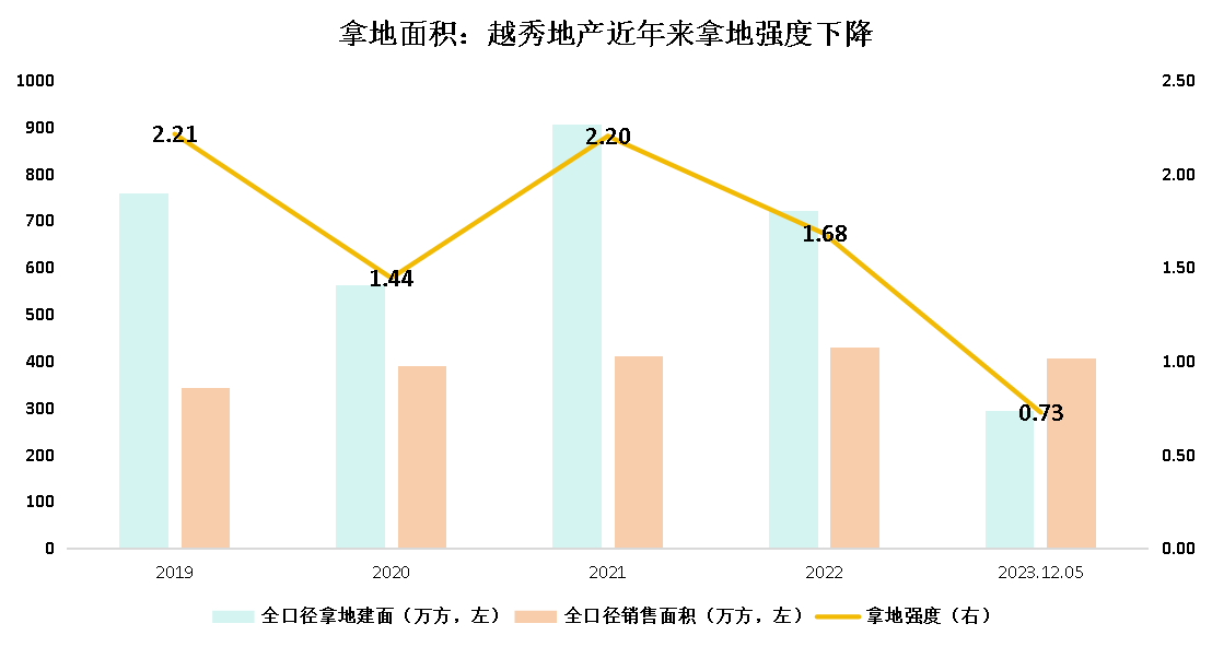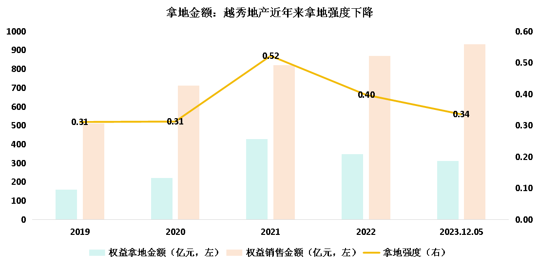 投资强度不如预期,或与越秀地产的“缩圈”投资策略有关。