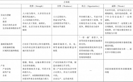 表2 吉布提经济地理条件的态势分析(SWOT)