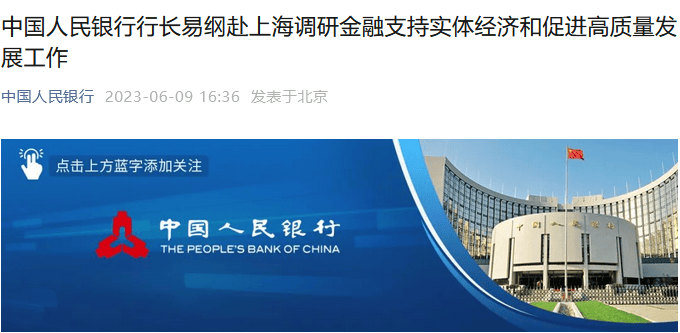 6月9日,据中国人民银行微信公众号消息,中国人民银行行长易纲赴上海调研金融支持实体经济和促进高质量发展工作。