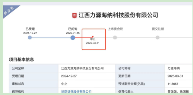 近期,证券业协会官网发布《关于2025年第一批首发企业现场检查抽查名单公告》,江西力源海纳科技股份有限公司(以下简称“力源海纳”)赫然在列。随后,力源海纳IPO审核状态变更为中止,原因是公司财务资料已过有效期,需要补充提交。