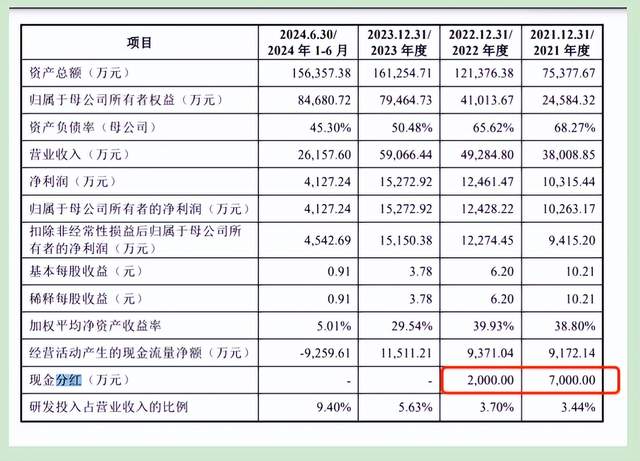 但与此同时,其这三年所获的大部分利润却并没有用于企业未来发展,而是很快就被装进了实控人的个人腰包。相关信息显示,2021-2022年,力源海纳累计分红9000万元。其中2021年分红7000万元,2022年分红2000万元,存在明显的上市前突击分红行为。