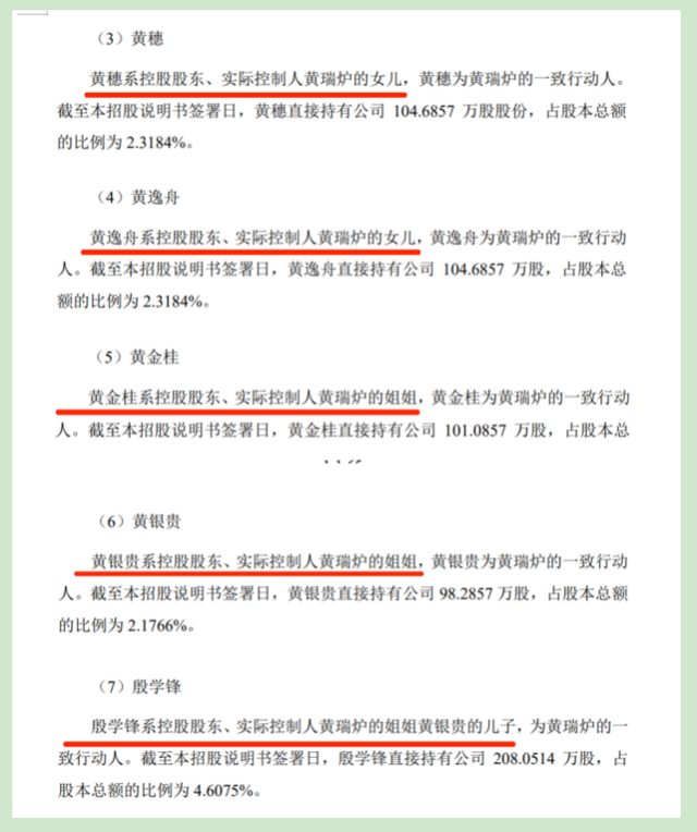 并且根据招股书,黄瑞炉与黄穗、黄逸舟、黄金桂、黄银贵及殷学锋于2024年3月签订了一致行动协议,约定在公司股东大会、董事会(如涉及)上以黄瑞炉意见为准,作出一致决定。
