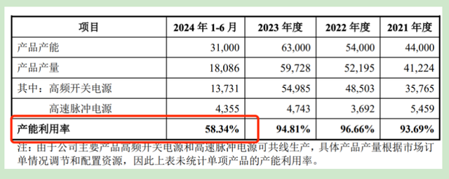 与此同时,力源海纳产能利用率也在直线下滑。2021至2023年力源海纳产能利用率超90%,2024年上半年却骤降至58.34%。其却仍计划募资近4亿元用于工业电源生产基地建设,产能消化能力存疑。