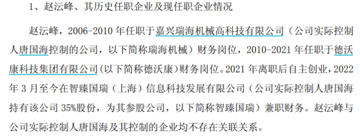 其次,回复函显示,赵沄峰过往的工作履历主要集中在财务岗位,未提及其具有智能床领域的相关从业经验。证券之星了解到,在参与设立上海舒福德不到一年后,赵沄峰便在2024年6月将所持全部股权以1500万元价格转让给上海撬心,原因包括上海舒福德经营业绩未达预期,赵沄峰面临还款压力,且其并未实际参与上海舒福德的经营管理,未能为公司业务发展提供实质性支持。